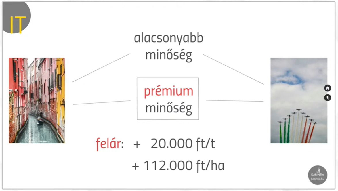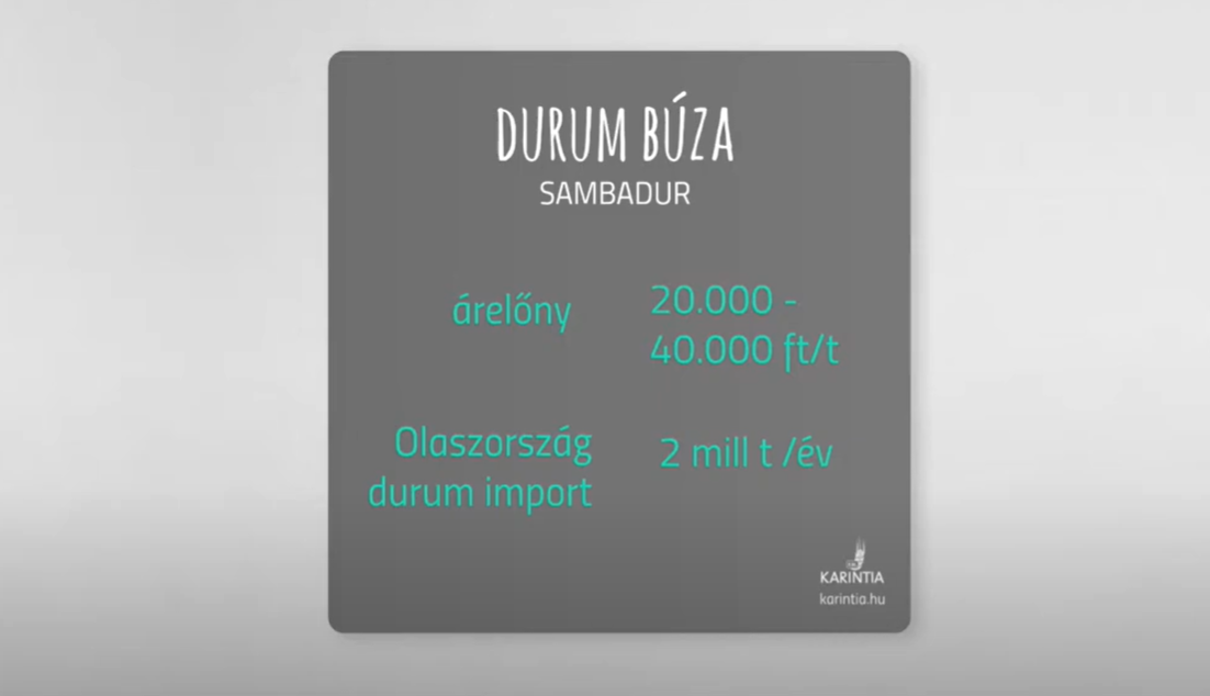 A prémium szegmens másik ígéretes lehetősége a durumbúza, amelyre Olaszország évente legalább 2 millió tonnás importigénnyel rendelkezik. Az orosz durum importját 2024. július 1-től 148 euró/tonna vám sújtja, ami várhatóan jelentősen csökkenti azok versenyelőnyét. A Karintia szakembere szerint ebben a szegmensben komoly lehetősége van a magyar termelőknek is.
